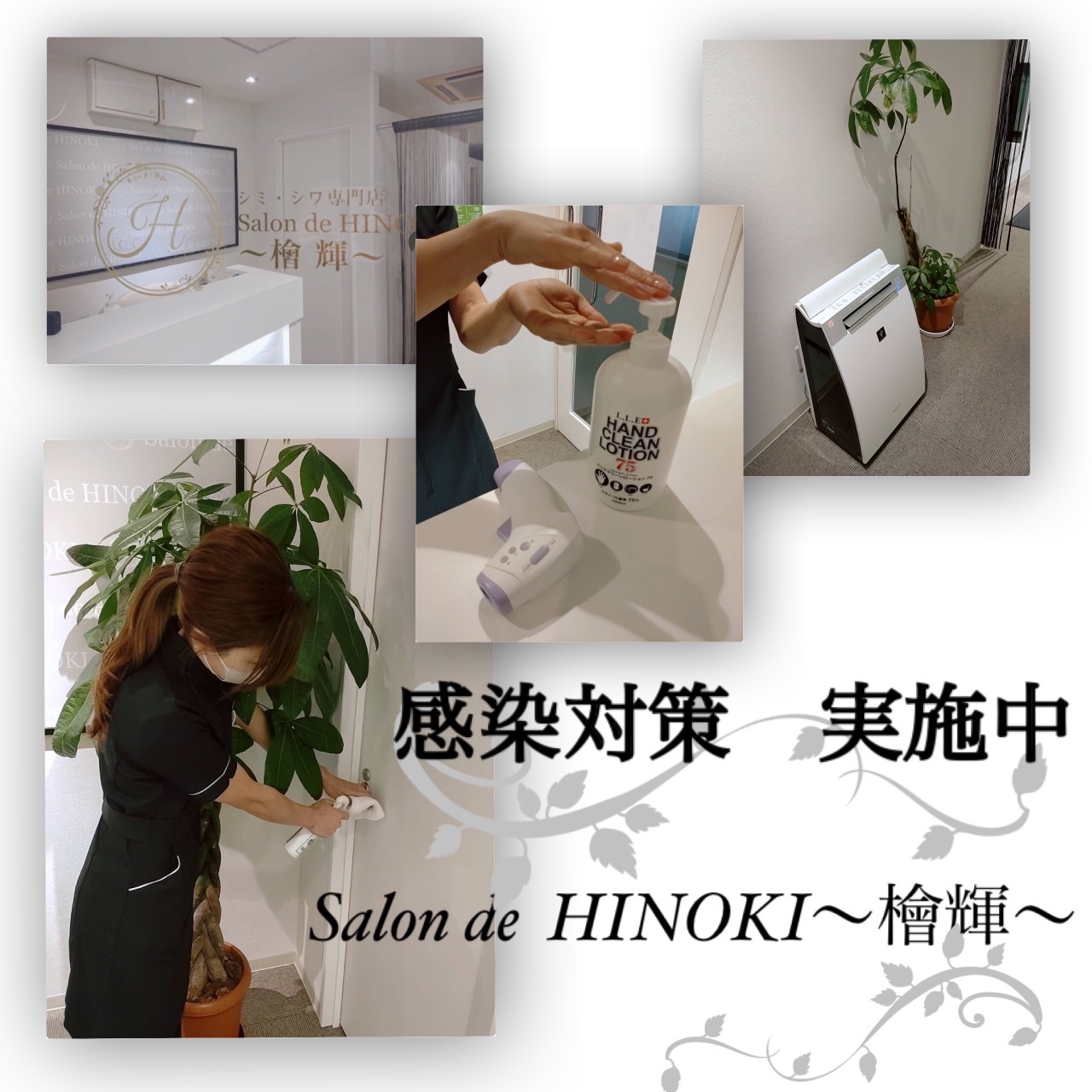 Salon de HINOKI〜檜輝〜ではお客様に安心してご来店頂けるよう感染対策に取り組んでいます。 お客様ごとに設備の消毒充分な換気と消毒作業に徹底致しております。 ご来店の際は手指のアルコール消毒検温と、感染症対策 […]